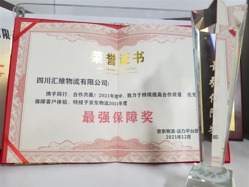 攜手共贏,陽光同行---匯維榮獲京東物流最強保障獎